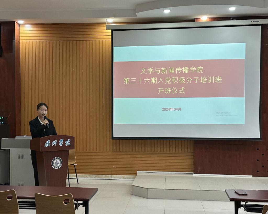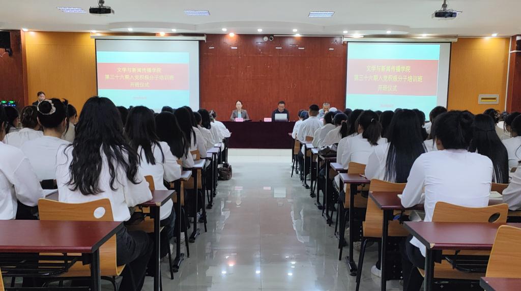 为深入学习贯彻习近平新时代中国特色社会主义思想和党的二十大精神,切实做好入党积极分子的教育培训工作,4月12日下午,文学与新闻传播学院在博文楼328报告厅举行第36期入党积极分子培训班开班仪式。