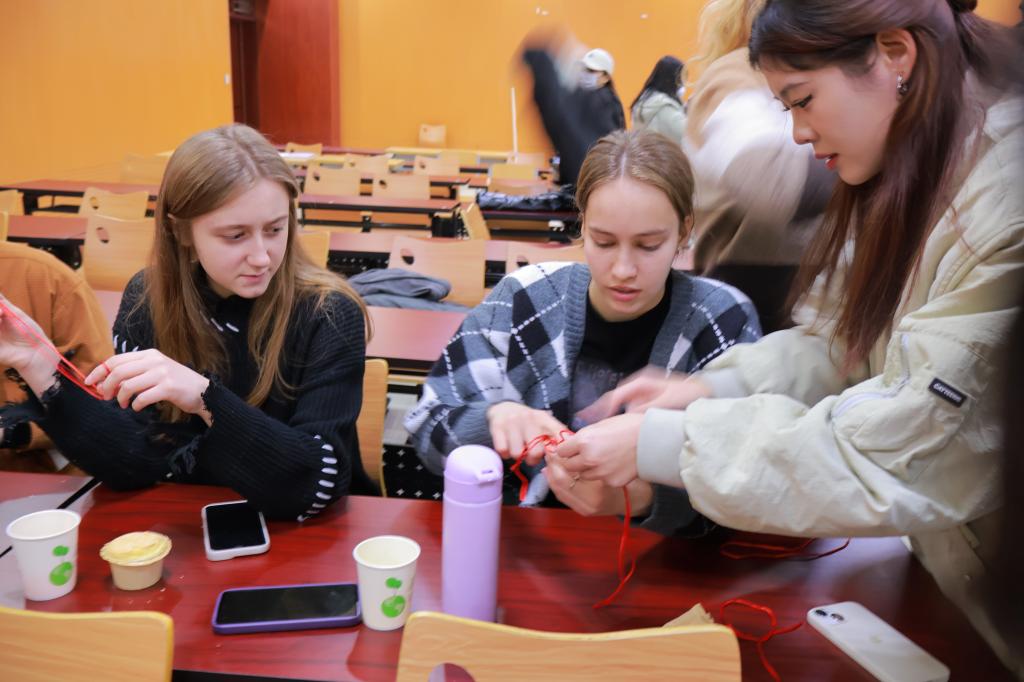 此次活动旨在增进tyc122cc太阳成集团中国学生与留学生的友谊交流,同时展示中国优秀传统文化的魅力。活动开始,23汉教的同学们轮流献上精彩的演出,一首《最炫民族风》让现场气氛高涨,中国古代文化吟诵《一剪梅》等节目让现场的观众感受到了中华文化的独特魅力,同学们收获满满。随后,剪纸非遗传承人张建志老师和他的助理徐延芳老师向全体参与活动者展示了复杂美丽惟妙惟肖的剪纸作品,同学们积极地向老师提问,现场互动格外活跃,同时他们还体验了如何编织中国结,体验之余,《你画我猜》《abcd》《大小西瓜》等游戏依次展开,同学们在活动中展现才华和热情,也在互动中加强与各国青年的友谊交流。