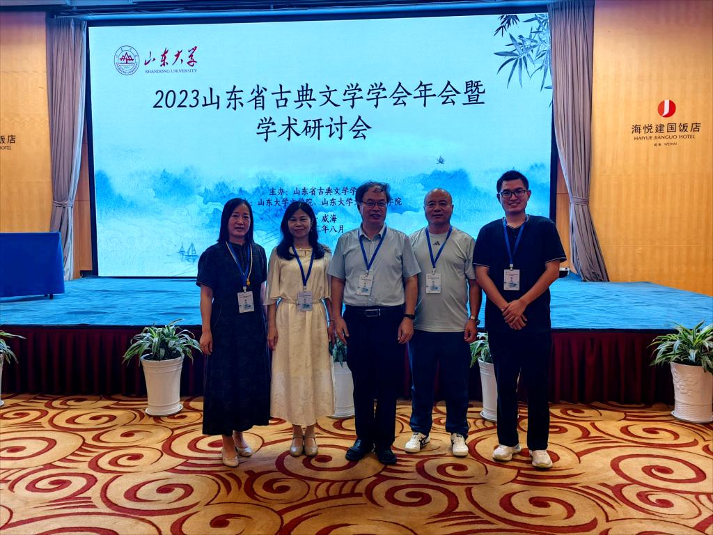 2023年8月23日至25日,“2023年山东省古典文学学会年会暨学术研讨会”在威海举办,年会由山东省古典文学学会主办,山东大学文学院、文化传播学院共同承办。我院黄金元教授、党月异教授、张金平副教授、崔秀霞副教授、李永添博士五位教师参加了此次论坛。