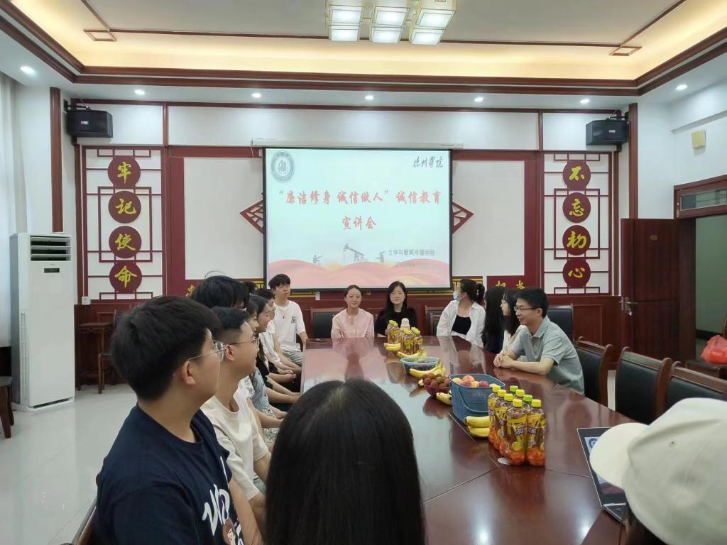 6月9日,文学与新闻传播学院在博文楼文学院会议室举办“廉洁修身 诚信做人”诚信教育宣讲会。文学院党政负责人、辅导员、班主任、毕业班贷款毕业生代表、班级主要学生干部、学生党员、优秀学生代表参加了此次宣讲会。