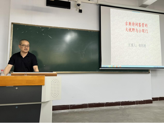 5月24日,安阳师范学院文学院副教授、硕士生导师、副院长,河南省高校青年骨干教师,河南省高校优秀共产党员,南开大学博士,河南大学博士后,中国社科院文学所访问学者张同利应邀在美术楼101教室为文学院师生做了题为《古典诗词鉴赏的大视野与小窍门》的学术报告。