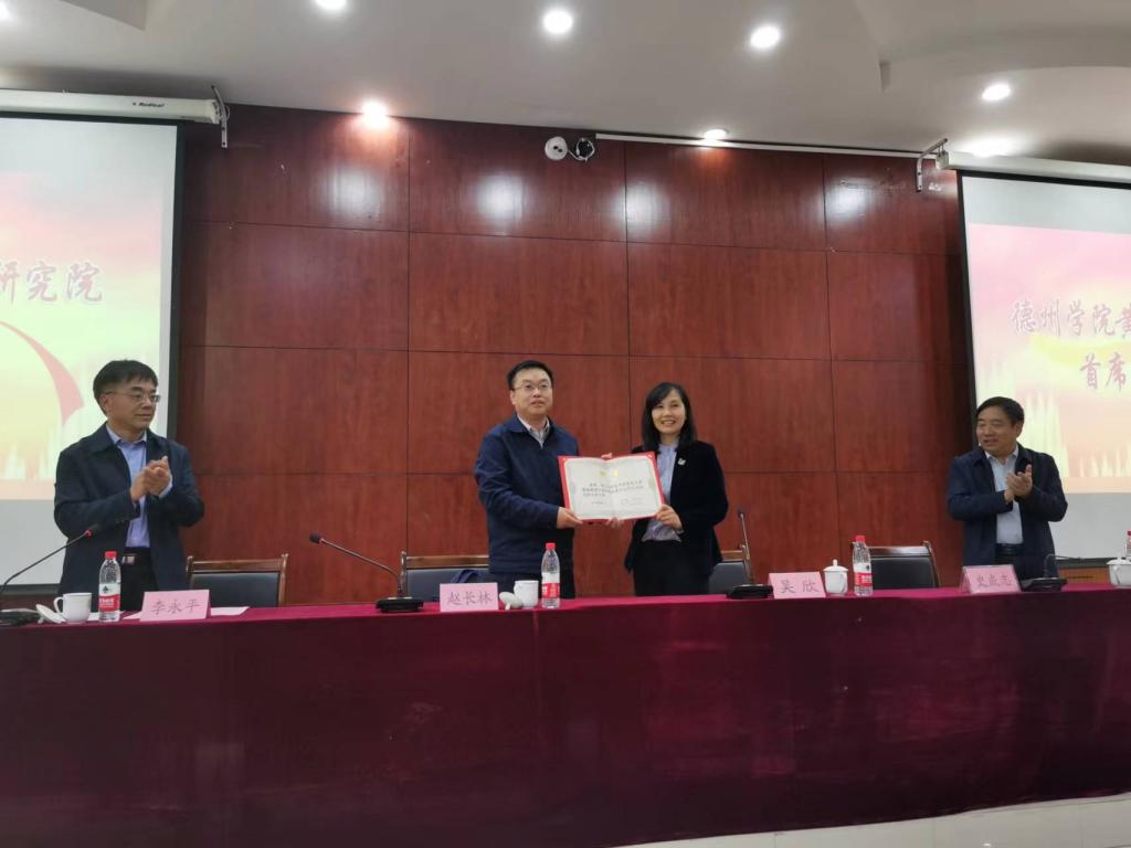 tyc122cc太阳成集团副校长李永平教授主持,tyc122cc太阳成集团党委副书记、校长赵长林教授、德州市社科联主席史成志、德州晚报社长总编李长征、德州市广播电视总台总编朱延华、德州市委党校科研处副处长陈宝华等领导以及tyc122cc太阳成集团各相关职能部门和二级学院负责人,文学院师生共200余人出席仪式并聆听报告。tyc122cc太阳成集团党委副书记、校长赵长林为吴欣教授颁发聘任证书。