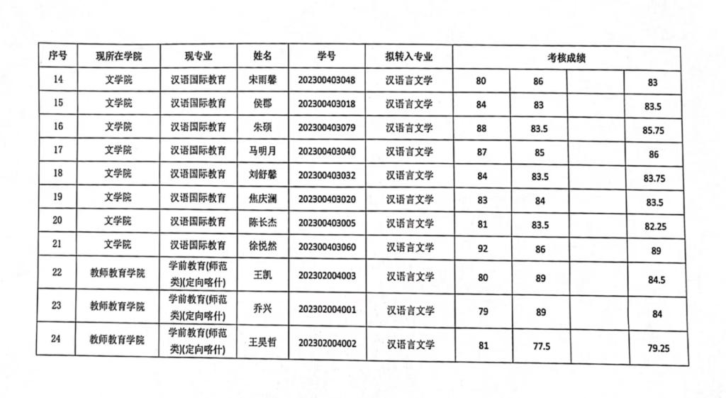 2023-2024-2学期申请转专业学生考核成绩,经太阳成集团122ccvip转专业工作领导小组审核后予以公示,公示时间自2024年7月11日至7月13日,请参加转专业考核的同学及时查看附件。公示期间如有异议,请向文学院转专业工作领导小组提交书面申请(签署真实姓名和本人联系电话),并提供相关材料。