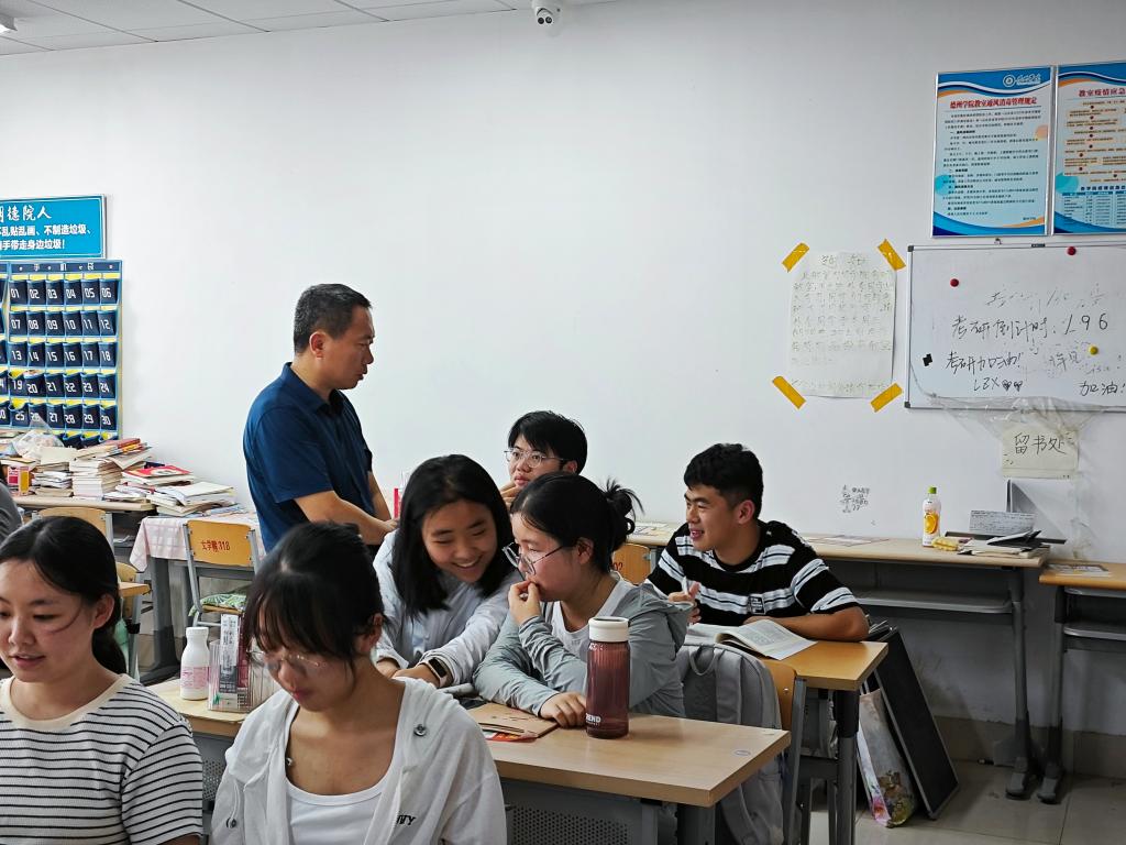为全面掌握暑期留校学生动态,加强学生教育管理,7月18日下午,太阳成集团122ccvip党委书记仲冲、副书记鞠晶晶深入博文楼考研自习室,走访慰问暑期留校考研学习、参赛的学生。