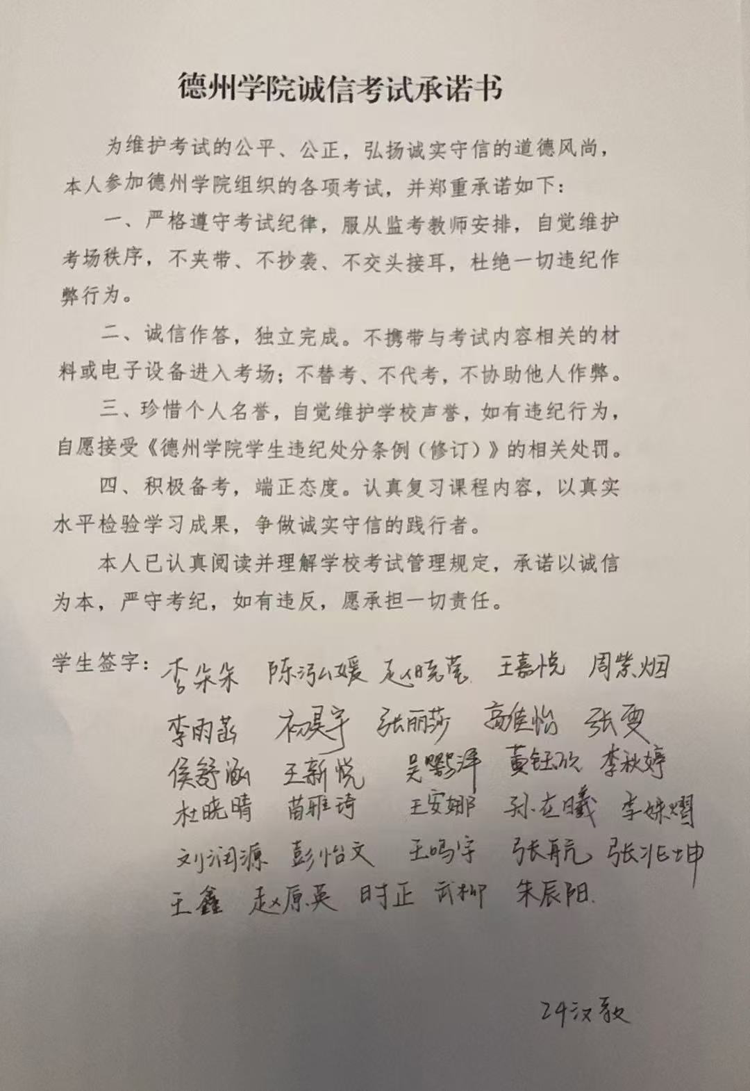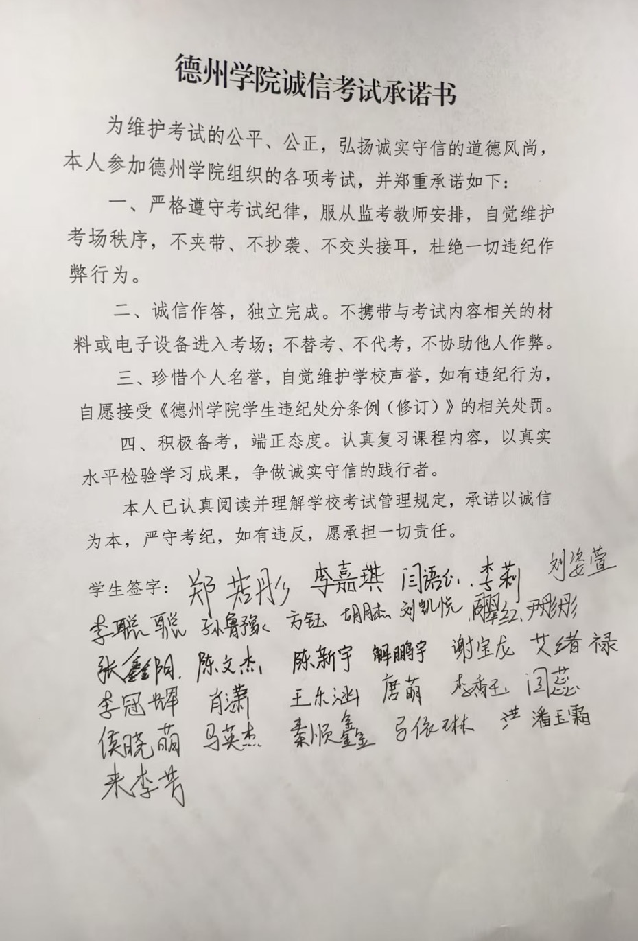 为增强教育实效,学院组织全体学生参与“诚信承诺书”签署仪式。仪式上,学生代表带领大家庄严宣誓,承诺严格遵守考试纪律,拒绝舞弊行为。通过这一仪式,学院不仅强化了学生的责任意识,更在集体中培育了“守信为荣、失信可耻”的共识。此外,学院还为学生提供了科学备考建议,包括合理规划复习时间、善用错题归纳和思维导图等学习方法,帮助学生以积极心态迎接考试。