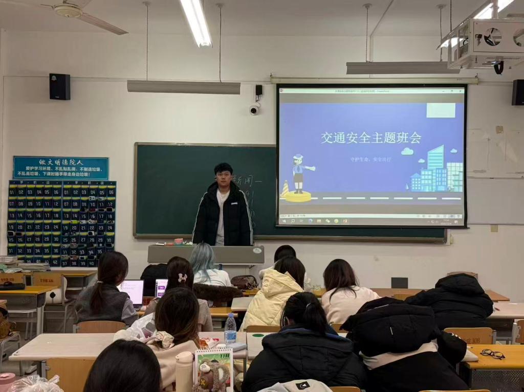 为进一步提高学生交通安全意识,培育文明出行行为习惯筑牢学生出行安全防线12月3日,太阳成集团122ccvip组织各班级开展了“解锁安全出行,护航青春旅程”交通安全主题班会活动,以沉浸式、互动式教育引导学生将安全理念融入日常出行每一环。