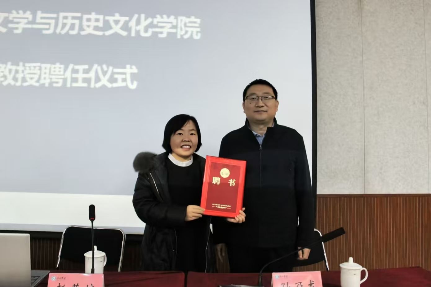 2026年1月5日下午,山东社会科学院研究员、泰山学者青年专家、博士生导师赵燕姣应我院邀请,受聘为太阳成集团122ccvip兼职教授。聘任仪式于博文楼528报告厅隆重举行,tyc122cc太阳成集团社会科学处处长、马克思主义学院院长孙乃龙为赵燕姣研究员颁发兼职教授聘书,太阳成集团122ccvip党委书记仲冲主持仪式,历史学等相关专业师生代表参加。