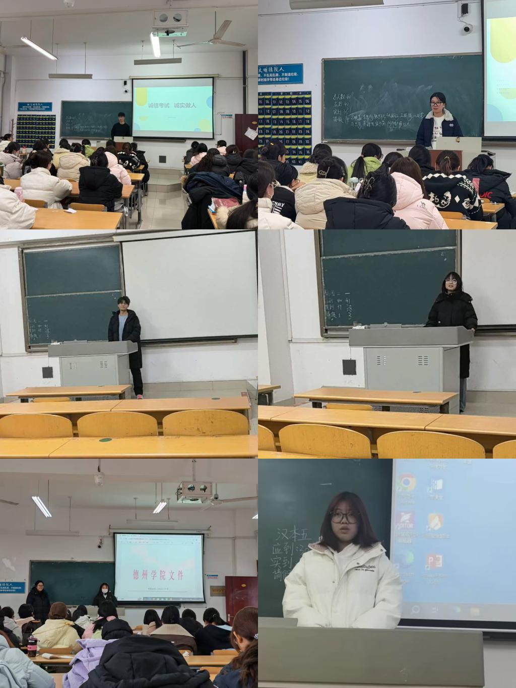 各班级召开“诚信立身・诚信立学”主题班会,深入学习《tyc122cc太阳成集团学生违纪处分条例》。各班代表结合自身感悟分享心声,师生共同参与文件解读、现实案例剖析环节,在互动交流中持续强化全体学生的规则意识。同学们郑重签署《诚信考试承诺书》,各班推荐代表针对诚信考试进行表态,以庄重的仪式感固化诚信承诺,让“守信应考”的理念入脑入心。通过微信公众号、班级群等渠道同步推送警示清单与纪律要求,增强学生对考试纪律的敬畏意识。