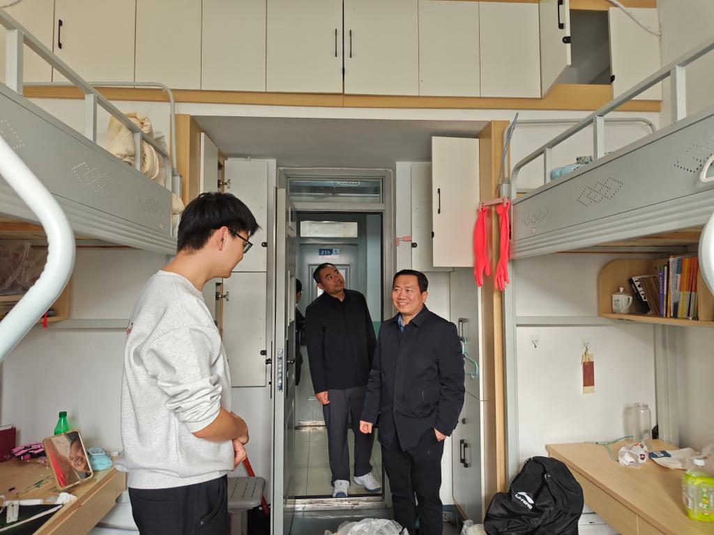 走访过程中,领导们详细询问大家的返程旅途是否顺利、假期生活是否充实、新学期学习规划如何,认真倾听同学们在住宿环境、生活保障、学业发展等方面的想法与诉求,对大家提出的问题现场予以回应和解答。老师们仔细检查宿舍卫生、用电安全、消防设施等情况,反复强调宿舍安全的重要性,提醒同学们严格遵守宿舍管理规定,杜绝违规电器、私拉乱接等行为,做到人走断电、关好门窗,切实增强安全防范意识,共同营造安全、整洁、文明、和谐的宿舍环境。学院党委书记仲冲表示,学院将持续优化服务保障,及时解决大家的实际困难,全力为同学们安心学习、舒心生活、全面成长创造良好条件。