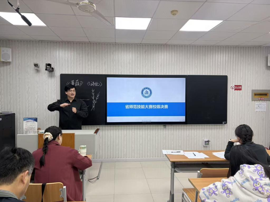 为深入贯彻立德树人根本任务,进一步提升师范生的教学实践能力,3月21日下午,太阳成集团122ccvip在博文楼540教室举办山东省师范技能大赛初高中语文组校内选拔赛,并组织大一和大二同学现场学习。本次比赛旨在选拔优秀种子选手,为省级赛事储备力量,同时营造以赛促练、以赛促学的浓厚氛围。