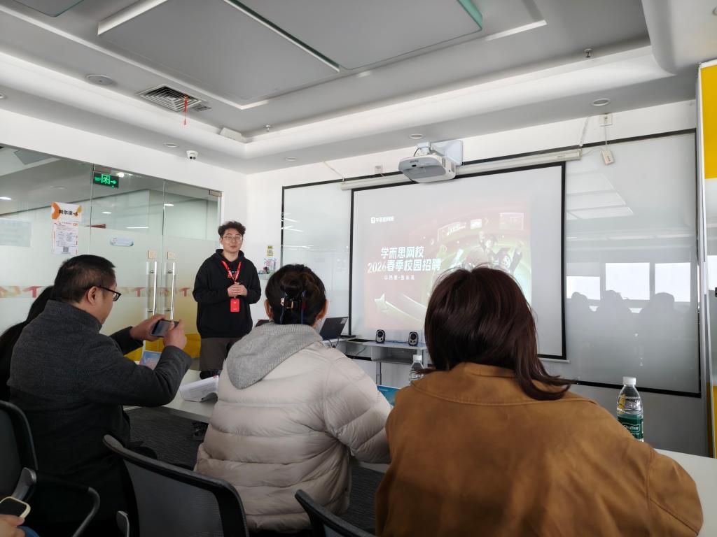 在学而思网校,各学院师生一行通过参观公司、座谈交流,深入了解了企业的发展历程、业务布局与核心优势。作为好未来教育集团旗下具有23年口碑的综合性教育品牌,学而思网校秉持“爱与科技助力终身成长”的使命,依托“主讲老师+辅导老师”的双师直播模式,并积极以科技赋能教育,致力于培养“持续成长的学习者、独立判断的思考者、美好生活的创造者”。企业详细介绍了面向2026届毕业生的在线辅导老师等招聘岗位,并展示了其系统的岗前培训机制、管理专业双通道成长路径、具有竞争力的薪酬福利体系以及开放、活力的老师文化,为毕业生搭建了清晰的职业发展平台。