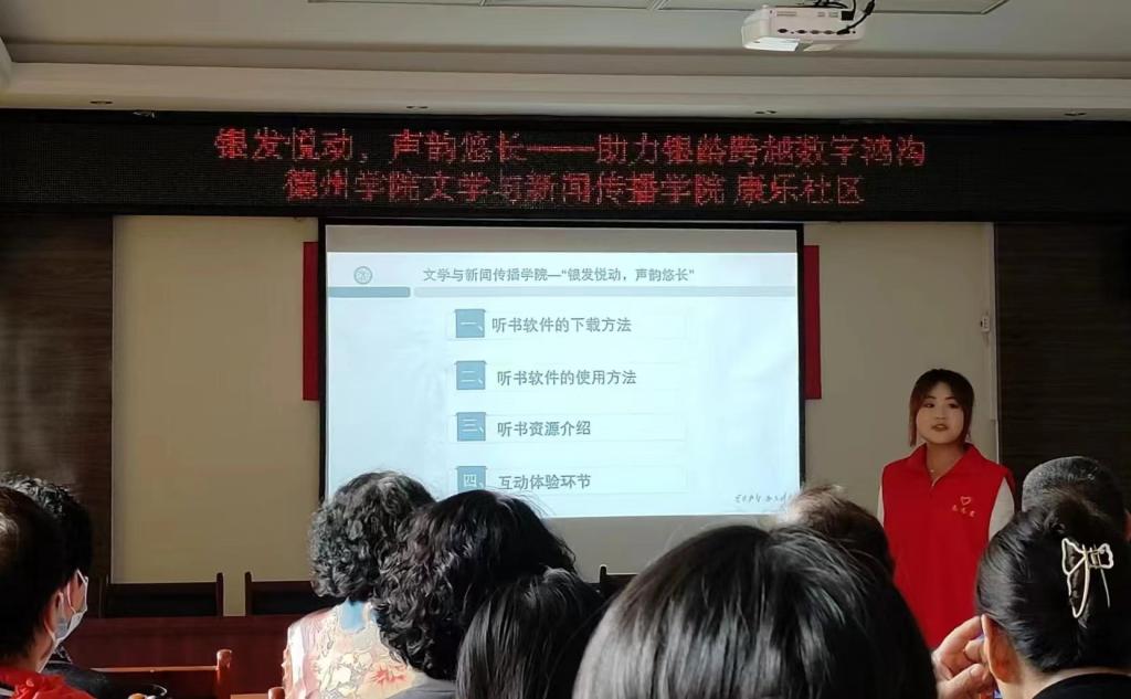 为丰富老年人的精神生活,提升老年人的记忆力、注意力和思维能力,教会老年人用耳聆听网络书籍、节目等资源,514日,文学与新闻传播学院走进康乐社区开展"银发悦动,声韵悠长"助力银龄跨越数字鸿沟主题社会实践活动。
