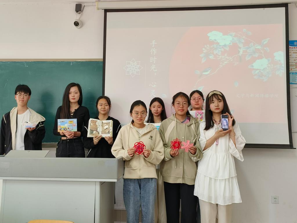 为陶冶情操、加强同学间交流,2024年4月21日,文学与新闻传播学院在博文楼314教室举行“手作时光,心灵之旅” 趣味手工活动。