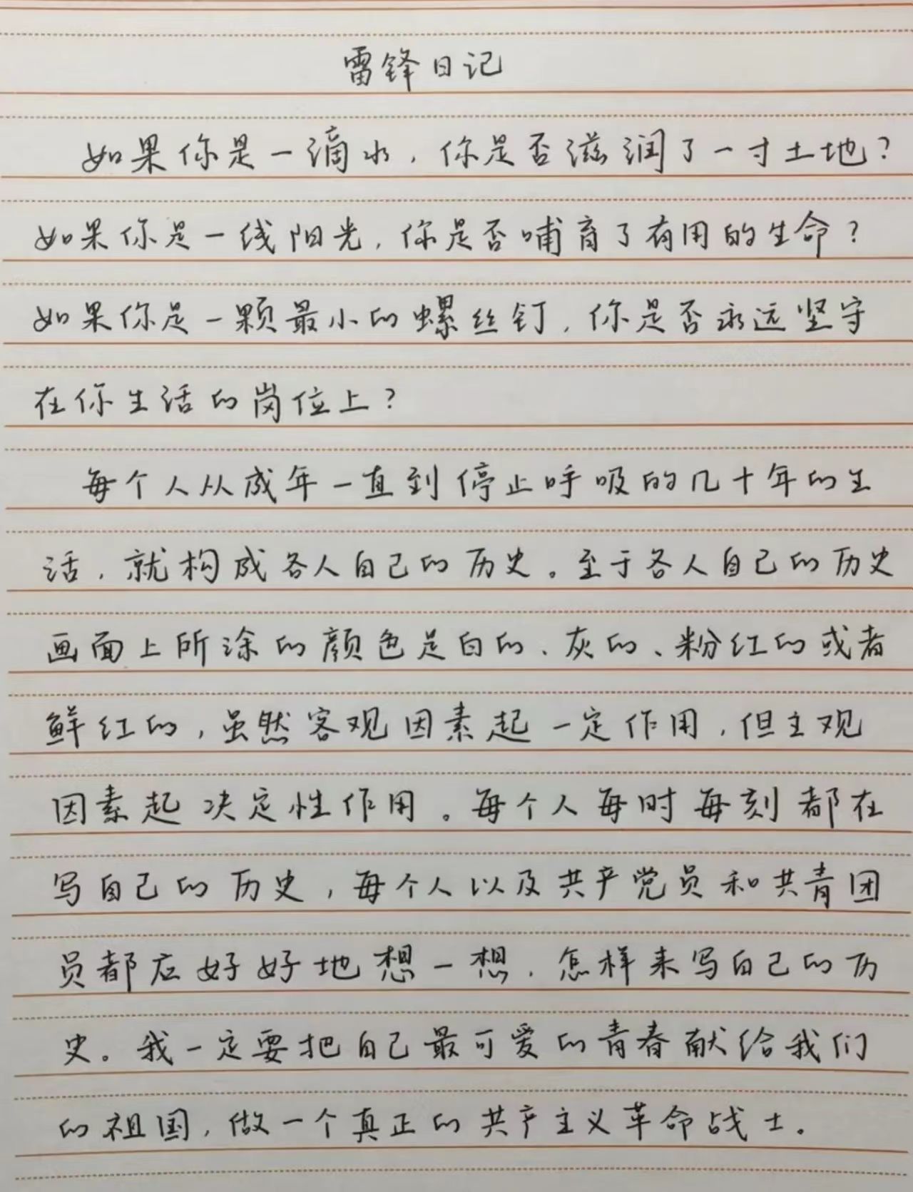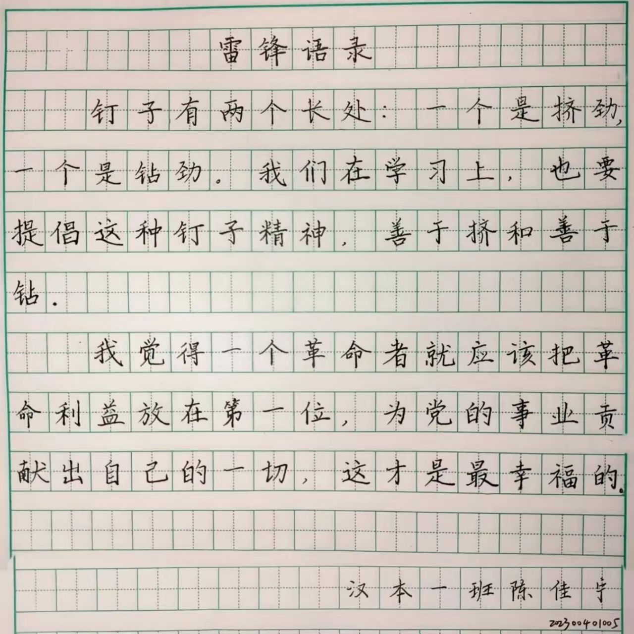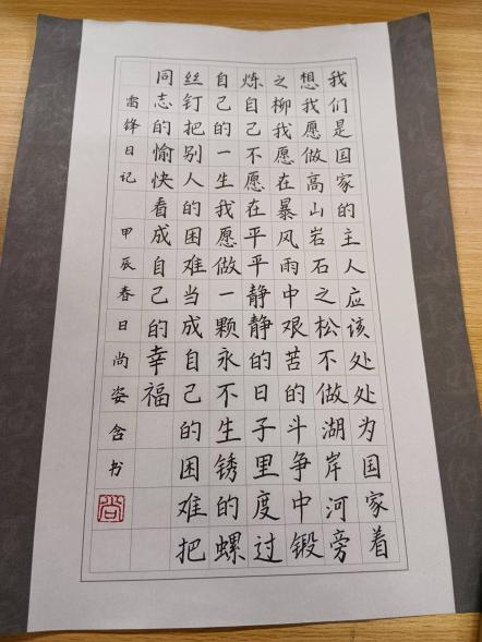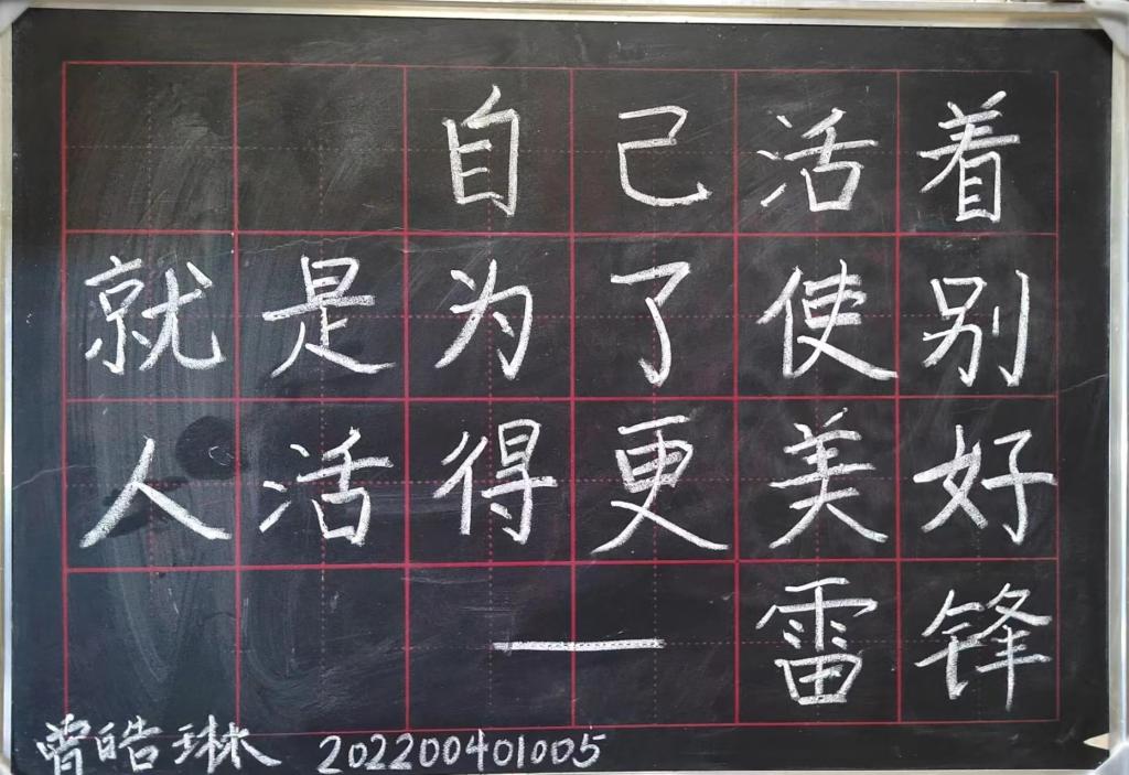 活动期间,同学们踊跃参加,通过硬笔书法、软笔书法或粉笔字等形式,书写雷锋日记、雷锋事迹等,创作出以雷锋经典语录为主题的作品,他们融情于文,凝神于字,以饱满的激情,挥毫泼墨、舞动丹青,践行新时代雷锋精神。这些作品无不透露着规范、严谨、灵动的气质,一幅幅精美的作品背后,呈现出的是思想的律动、艺术的境界,这不仅是一场书法技艺的展示,更是一次心灵的洗礼和思想的交流,让学生在艺术创作中深入理解雷锋精神。