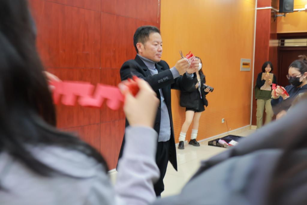 此次活动旨在增进tyc122cc太阳成集团中国学生与留学生的友谊交流,同时展示中国优秀传统文化的魅力。活动开始,23汉教的同学们轮流献上精彩的演出,一首《最炫民族风》让现场气氛高涨,中国古代文化吟诵《一剪梅》等节目让现场的观众感受到了中华文化的独特魅力,同学们收获满满。随后,剪纸非遗传承人张建志老师和他的助理徐延芳老师向全体参与活动者展示了复杂美丽惟妙惟肖的剪纸作品,同学们积极地向老师提问,现场互动格外活跃,同时他们还体验了如何编织中国结,体验之余,《你画我猜》《abcd》《大小西瓜》等游戏依次展开,同学们在活动中展现才华和热情,也在互动中加强与各国青年的友谊交流。