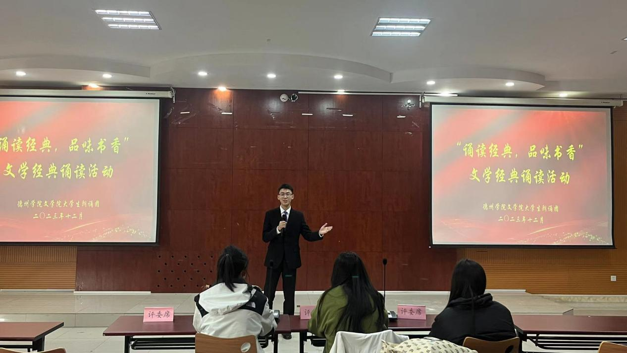 为激发广大青年大学生的文学阅读热情,展示新时代大学生的青春活力和奋斗不息的精神面貌,12月9日,文学与新闻传播学院大学生朗诵团举办“诵读经典,品味书香”文学经典诵读活动。