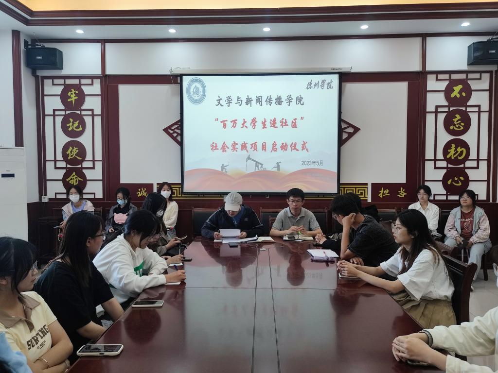 为深入学习贯彻党的二十大精神,践行团中央“大学生社区实践计划”,5月9日,文学与新闻传播学院2023年“百万大学生进社区”社会实践活动项目启动仪式在博文楼329举行。文学与新闻传播学院学生工作队伍、团学骨干、各团支部书记、各社区团组织兼职副书记、社团负责人、学生会负责人参加了启动仪式。
