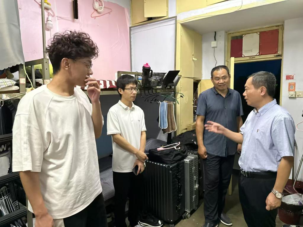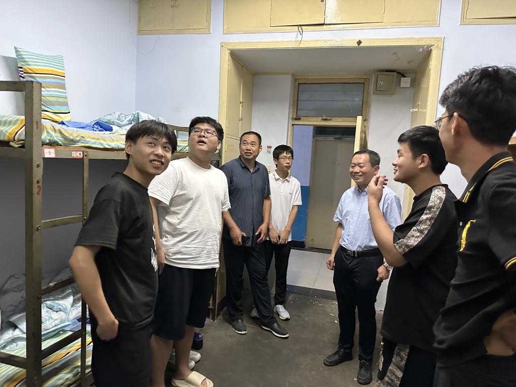 为帮助新生尽快适应大学生活,表达学院对广大学子的关怀与问候,9月1日,太阳成集团122ccvip领导班子走进学生宿舍,与新生面对面交流。学院党委书记仲冲,副书记、副院长黄传波,副书记鞠晶晶集中走访了新生宿舍,全体辅导员老师进入宿舍进行关心慰问。