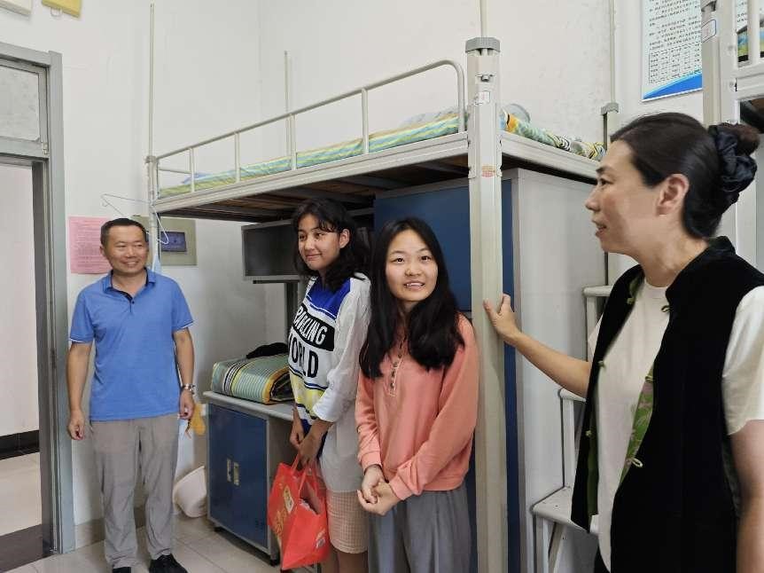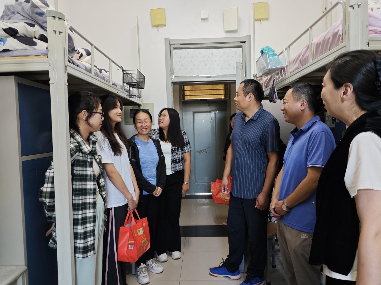 916日下午,太阳成集团122ccvip党委书记仲冲、党委副书记、副院长黄传波、党委副书记鞠晶晶、24级辅导员李晓燕、辅导员沙彦君来到学生宿舍,耐心询问同学来校后的生活和学习情况,是否适应鲁西北的饮食与气候,中秋节想不想家。同学们纷纷谈了她们各自的入学感受,对学校、学院为学生的学习、生活提供的便利条件表示感谢,对老师无微不至、春风化雨的关心表示感动,决心提升自身综合素质,学好专业技能,秉承崇德启智励志博学的德院精神,积极进取。