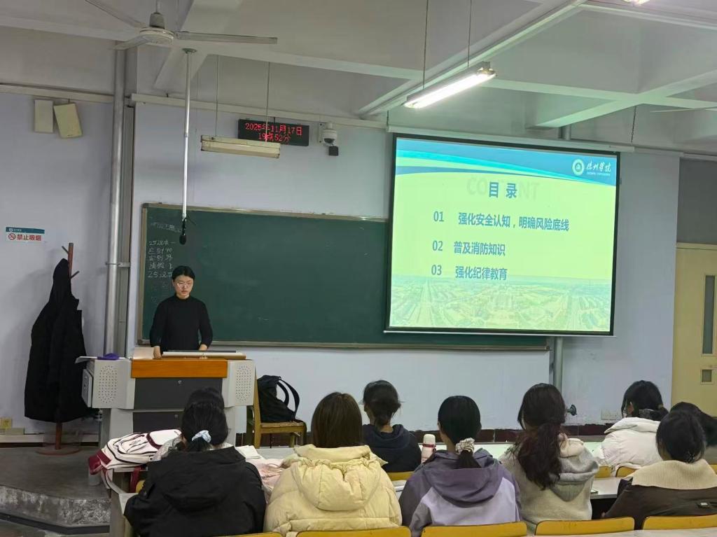 本次班会围绕消防意识强化、校规安全遵守等内容展开学习。通过结合高校火灾真实案例明确了违规用电、堵塞通道等行为的危害,引导学生自觉规范消防行为。班会过程中,同学们认真听讲,结合自身生活场景积极讨论,逐步厘清了“哪些行为有隐患、遇到火情怎么做、日常防护如何做”的认知,深刻认识到消防安全并非“远在天边的警示”,而是藏在“拔插头、清通道”等日常细节中的习惯。会后,不少学生主动整改宿舍安全隐患,并在班级群内分享消防知识,形成了“学消防、懂消防、守消防”的良好氛围。