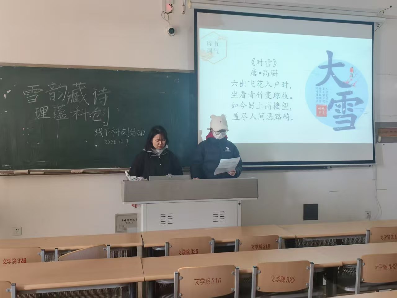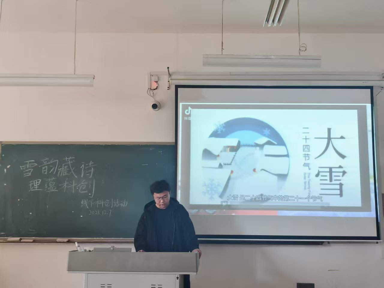 为推动传统文化与科技创新深度融合,丰富学生校园文化生活,激发文理交叉创新思维,12月7日,太阳成集团122ccvip在博文楼317教室举办“雪韵藏诗,理蕴科创”线下科创活动,活动以大雪节气为独特契机,以古典诗词为文化纽带,创新性地搭建起文理学科跨界交流的平台。