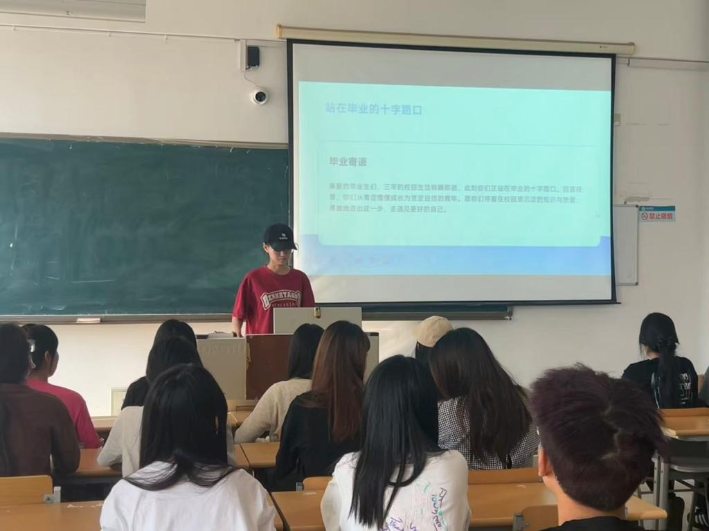活动伊始,学院领导致辞,回顾同学们在校期间的成长足迹,充分肯定了大家在学业与实践中的成绩。结合毕业生即将面临的新阶段,领导重点强调了各类安全问题,包括就业安全、防范诈骗、人身与财产保护等,提醒同学们进入社会后要保持警惕、筑牢安全防线。随后,寄语全体毕业生坚守初心、脚踏实地,在时代浪潮中找准定位、勇敢探索,书写人生新篇章。