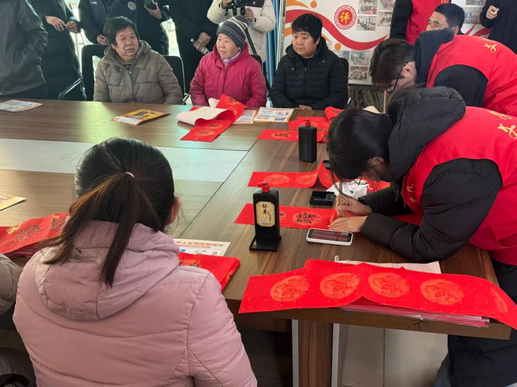 活动现场,志愿者们创新采用“集中讲解+入户宣讲”的双线模式,让防诈骗知识普及更接地气、更入人心。在集中宣讲环节,志愿者结合近期高发的电信网络诈骗真实案例,用通俗易懂的方言拆解诈骗分子的惯用套路,细致讲解身份冒充、虚假投资、养老产品推销等常见骗局的识别技巧与应对方法。入户走访时,志愿者们与老人面对面拉家常、手把手教方法,针对老人提出的疑问逐一耐心解答,通过情景模拟、案例复盘等方式帮助老人加深记忆,切实筑牢老年群体的防诈“安全防线”。“原来这些看似贴心的说法里藏着这么多陷阱,以后可得多留个心眼!”听完讲解后,一位老人深有感触地说道。防诈宣讲结束后,两位擅长书法的志愿者现场挥毫泼墨,一副副笔力遒劲、寓意吉祥的春联跃然纸上。老人们围在桌旁,挑选着心仪的对联,脸上洋溢着幸福的笑容,连连向志愿者们道谢。笔墨飘香间,不仅传递了浓浓的年味,更让传统文化在志愿服务中得以传承与弘扬。