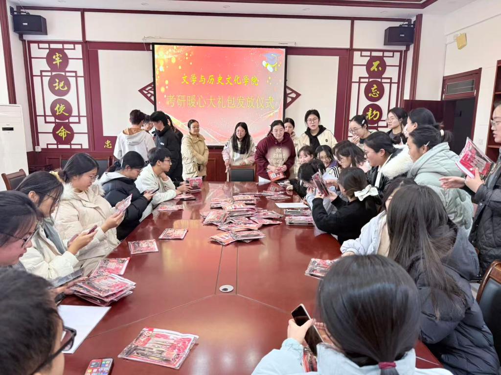 文学院为每位考研学子准备了“考研加油包”,其中承载着学院对每一位同学的亲切关怀与美好祝愿。这份礼物既是对同学们努力奋斗的肯定,也是温暖而有力的支持,希望为他们的考研征程注入更多信心与力量。